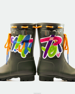 como parte de nuestra serie Hunter Creators, el artista Sam Lao tiene creó este diseño de edición limitada, tomando nuestras botas de lluvia cortas originales para mujer, adornándolas con un aplique con mechones en su estilo característico y rematándolas con ojales roscados alrededor del puño. cada par ha sido personalizado a mano, por lo que son únicos, y cada estilo es uno de los 30 que se lanzarán alguna vez.