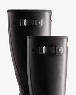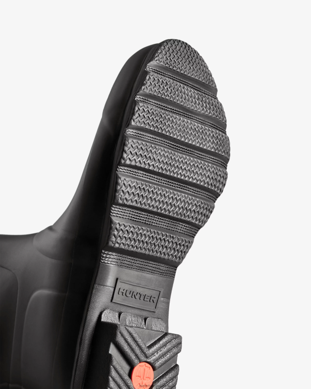 debutó por primera vez en 1956, nuestras botas de lluvia altas han sido el corazón de la marca desde entonces. Ahora disponibles con un ajuste ancho actualizado y mejorado, estas botas de lluvia para mujer están hechas a mano durante tres días con caucho natural vegano, que está vulcanizado para una protección impermeable superior. Con nuestra característica huella Hunter bajo los pies, estas botas negras te protegerán en condiciones húmedas y resbaladizas.