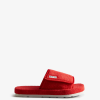Las chanclas con plataforma plana de piel sintética de felpa están confeccionadas con correas cruzadas y una suela de plataforma. un compuesto de eva liviano y duradero en la plantilla brinda soporte y amortiguación. Esto se complementa con la exclusiva suela Hunter, que garantiza que se puedan usar en interiores y exteriores. Libres de crueldad animal, estas chanclas verdes de piel sintética son completamente veganas y lujosas al tacto.