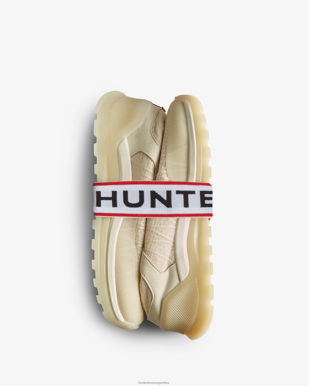 una zapatilla urbana informal con un atractivo deportivo de lujo, la zapatilla de viaje Hunter está confeccionada con una doble capa suave y transpirable de Nylon y malla 100% reciclados. La entresuela de EVA reciclada, liviana y absorbente de impactos, y la plantilla de ortholite reciclada garantizan una comodidad superior y un uso flexible, mientras que la suela de goma duradera con certificación FSC proporciona un agarre adicional para todos los terrenos. Una línea de protección de goma de TPU súper liviana agrega un nivel adicional de protección contra la lluvia. Esta zapatilla blanca para mujer está rematada con una lengüeta con el logo tricolor característico de Hunter en la parte posterior para facilitar el calce.
