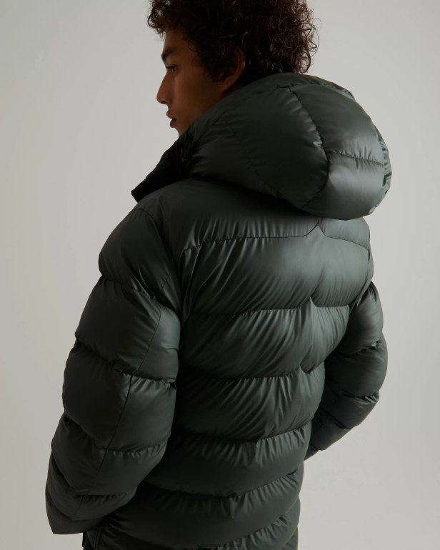 Hemos realizado dos ajustes a nuestro abrigo acolchado de goma vegano para hombre más vendido para hacerlo aún más sostenible. el aislamiento suave y acolchado está hecho de botellas de plástico recicladas y el forro está hecho de poliéster reciclado. Con una capa exterior de goma repelente al agua, este abrigo de color verde intenso te mantendrá abrigado en temperaturas tan bajas como -25 grados centígrados (-13 grados Fahrenheit).