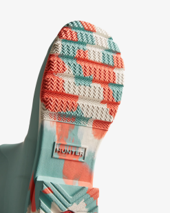 botas de lluvia cortas con suela de color salpicado T424T132 mujer azul ojo de perdiz/sauce blanco/rosa caqui Hunter